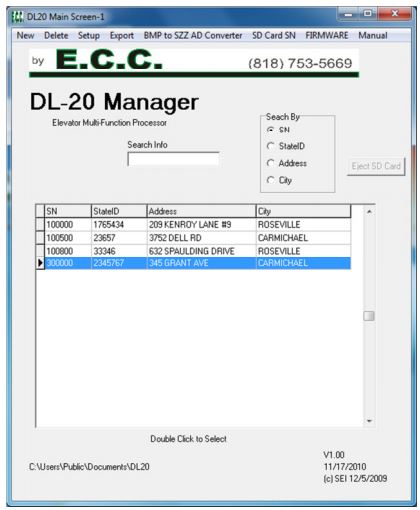 The DL-20 Manager is the primary software package designed for the Elevator Company. It will program all features of the DL-20. It can be used on any standard PC. The programming is placed on an SD card which is then simply inserted into the DL-20. Your programming and configuration for every elevator is saved so future re-installation or changes can be made quickly and easily.